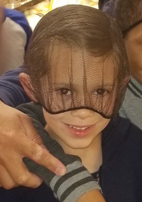 It was a really fun day! Seeing the kids “oooh and ahhh” when they saw the steak wrapping machine in the butcher block was hilarious! They also got to tour the bakery, the produce department, and the storage room. They all wore their little hair nets too- my child chose to wear his like this: